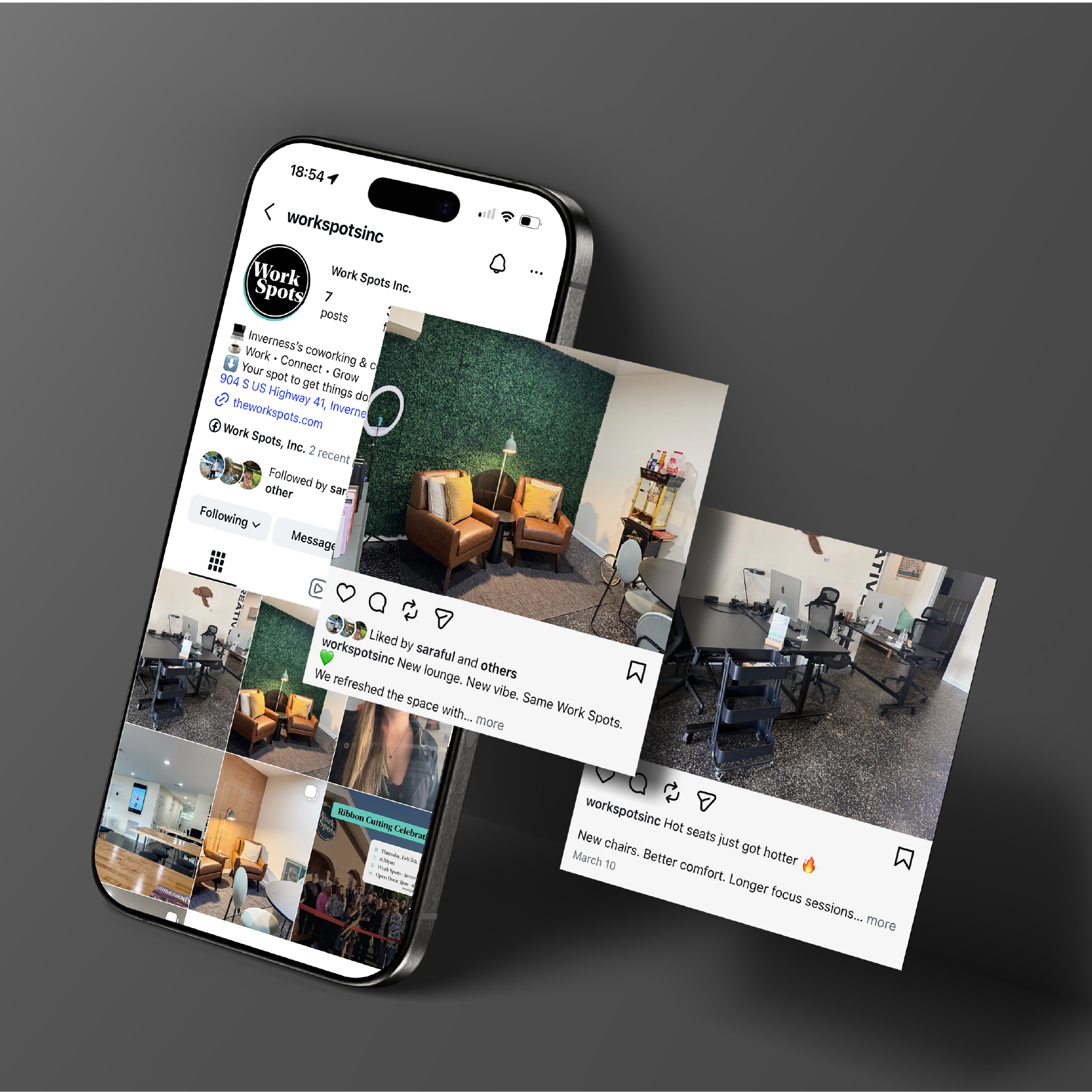We partnered with Work Spots from the very beginning, developing their entire brand identity, digital presence, and technology platform from the ground up. The visual system, copywriting, and graphic design work together to position Work Spots as something genuinely different from sterile, corporate coworking chains — a place that feels intentional and community-driven while delivering a polished, modern experience.